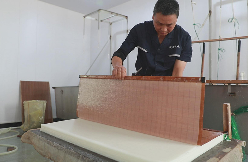 10月9日下午,縣長吳云忠赴海陽鎮(zhèn)凝霜文化發(fā)展公司調(diào)研徽州楮皮紙傳承與發(fā)展工作,縣委常委、海陽鎮(zhèn)黨委書記金學年,縣委常委、縣政府副縣長程衛(wèi)華參加調(diào)研活動。 吳云忠一行實地察看了徽州楮皮紙生產(chǎn)工藝流程,認真聽取企業(yè)負責人介紹,詳細詢問徽州楮皮紙制作工藝