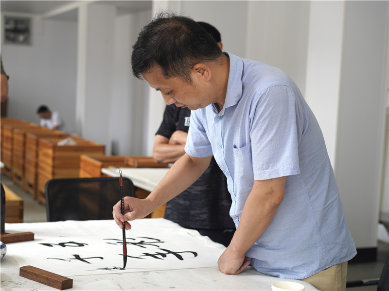 感謝休寧縣書法協(xié)會主席胡社文陪同安徽省青年書法家協(xié)會主席王亞洲等藝術(shù)家到公司指導,體驗徽州楮皮紙傳統(tǒng)技藝。