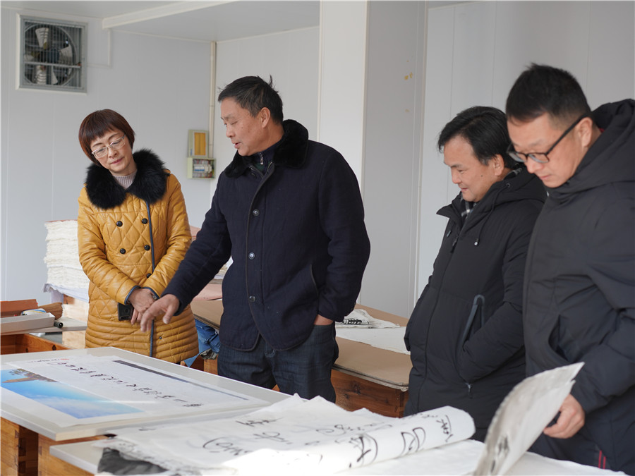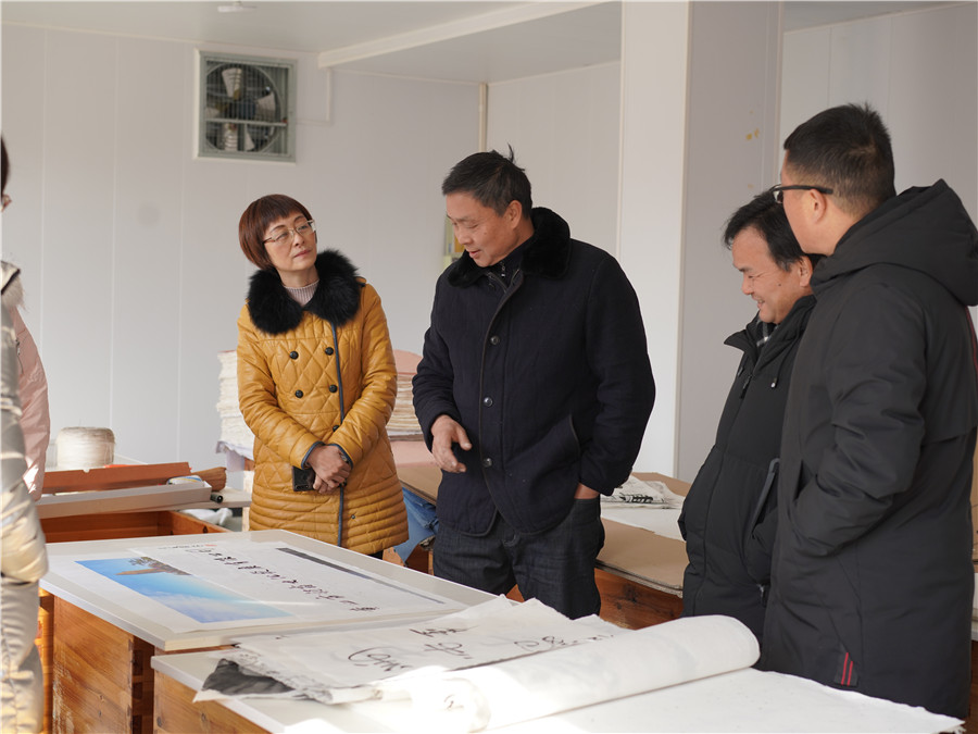 1月11日由市文旅局副局長王迎春帶隊的,黃山市非物質(zhì)文化遺產(chǎn)傳習基地驗收組到我司黃山市凝霜文化發(fā)展有限公司進行調(diào)研工作。