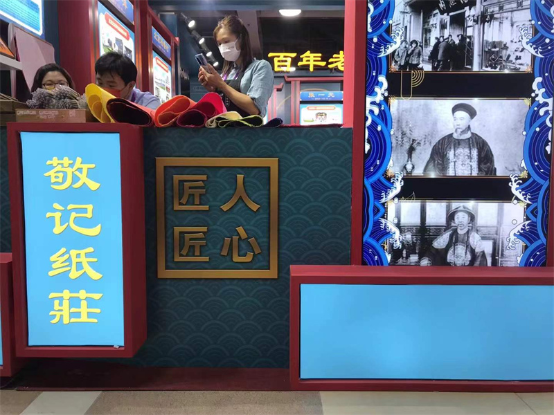 人文交流區(qū)E2區(qū)熱鬧非凡,現(xiàn)場了解傳統(tǒng)手工紙制作技藝。